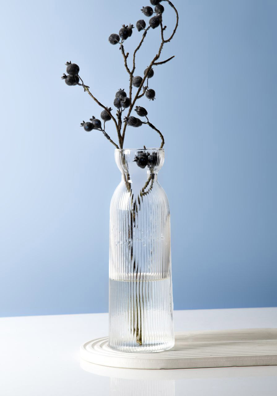 گلدان لاوان شفاف با طراحی استوانهای و خطوط برجسته، انتخابی شیک و ساده برای دکوراسیون مدرن است. شیشه شفاف این گلدان جلوه طبیعی ساقه و گل را دوچندان میکند و مناسب گل طبیعی یا مصنوعی است.